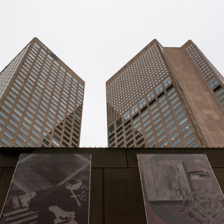 In pure contrast, I look at the polished stone and my fingertips beg to touch the cold smoothness of the near-frictionless surface. The hardness of stone proclaims an unyielding, impenetrable exterior. As I make my way further down Flinders Lane, a stretch of grey, reflective, shimmery stone facades open up to me. The large size of stone panels implies use of machinery – in both their creation and erection. Unlike brick, polished stone (i.e. marble) speaks of monumentality and suggests societal class. Standing in front of the grey stone building I muse whether peering only at our own reflections isolates us from a deeper community; perhaps these hard, reflective materials are meant to hint at the hidden wealth and powers at play.